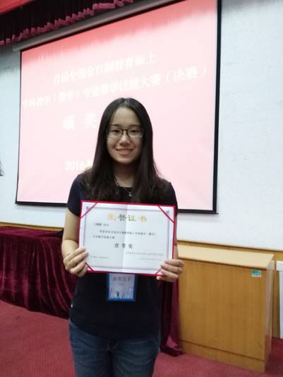 2016年9月26日,由全国教育专业学位研究生教育指导委员会主办,鲁东大学研究生院承办的首届全国全日制教育硕士学科教学(数学)专业教学技能大赛决赛落下帷幕。公司2015级教育硕士学科教学(数学)专业王雅朦同学代表竟博参赛并获一等奖,李明兰老师获得优秀指导教师荣誉称号。